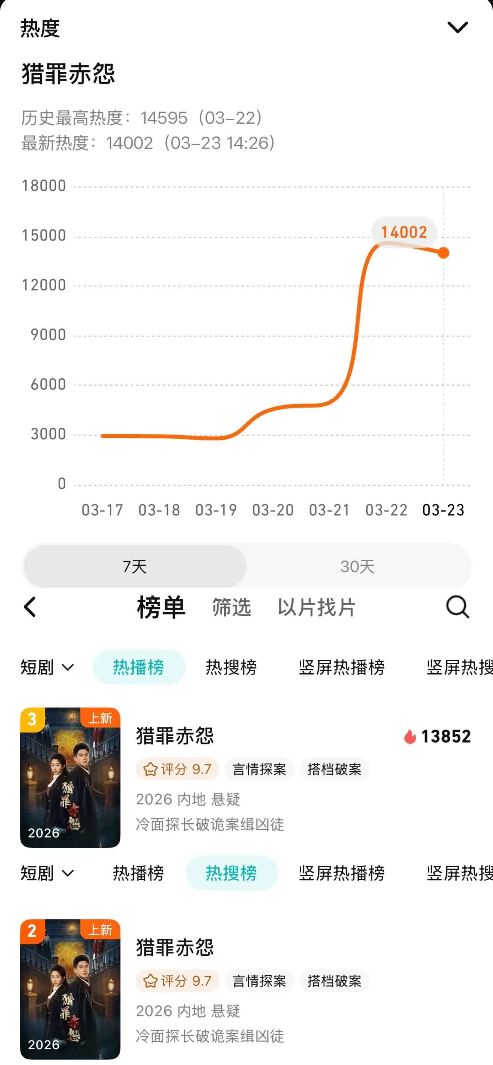 该剧昨日也曾上线,首播只是6集,腾讯视频首日开播最高热度14595,一举荣登腾讯视频短剧热播榜TOP3和热搜榜TOP2