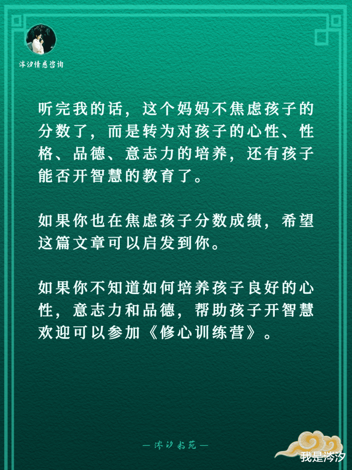 听完我的话,这个姆妈不张惶孩子的分数了,而是转为对孩子的心性、性情、品德、毅力力的培养,还有孩子能否开聪惠的讲明了。若是你也在张惶孩子分数收获,但愿这篇著作不错启发到你。若是你不知谈奈何培养孩子邃密的心性,毅力力和品德,匡助孩子开聪惠迎接不错插足《修心进修营》。