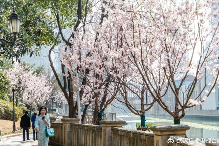 楚天河街是武汉有名的文化买卖街区。近期,楚河北岸刚刚完澄净不雅升级,尤其是训诫了一批樱花树,进一步进步了这里的景不雅后果。