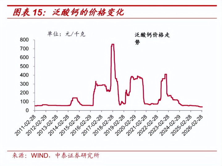 前边分析了两个强逻辑的加价品种,那么还有莫得滞涨的品种?也不少,而泛酸钙可能算其中一个。