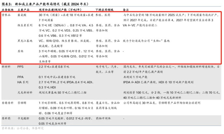 新和成是全球维生素限制完全的龙头,驱散2024年末,新和成的维生素A、维生素E、维生素C年产能别离为0.8万吨、6万吨和4.5 万吨,别离居全球第2、第1和第3。