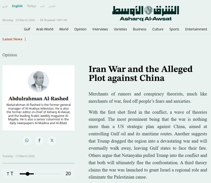(本文原载于3月22日《中东报》网站HQSports,原标题为《伊朗斗争与所谓的反华打算论》)