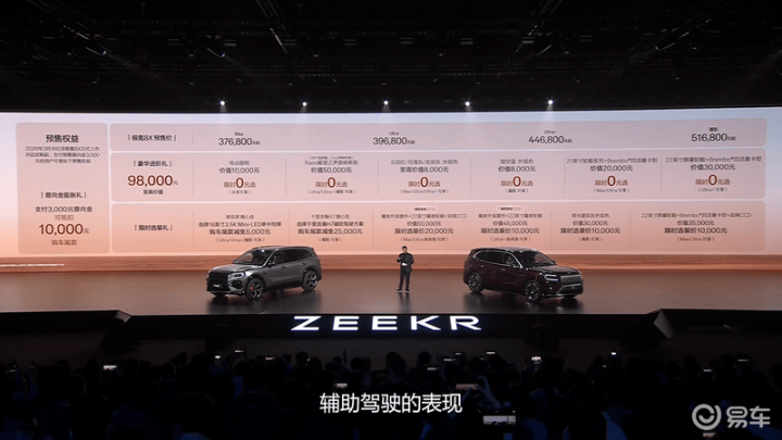 易车讯3月16日,极氪汽车举办极氪8X技能发布会,极氪8X在发布会上同步开启预售,预售价37.68-51.68万元。极氪8X基于SEA-S超等电混架构打造,首发搭载最新版G-ASD高阶接济驾驶系统,预测将于二季度肃肃上市。为知足用户需求,极氪8X推出六座选装职权,Max、Ultra、Ultra+三款树立1万元即可选装六座悦享包。