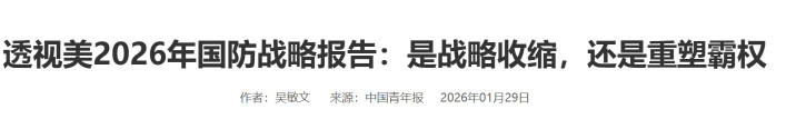《透视好意思2026年国防策略说明:是策略收缩,照旧重塑霸权》2026年01月29日 开始:中国后生报