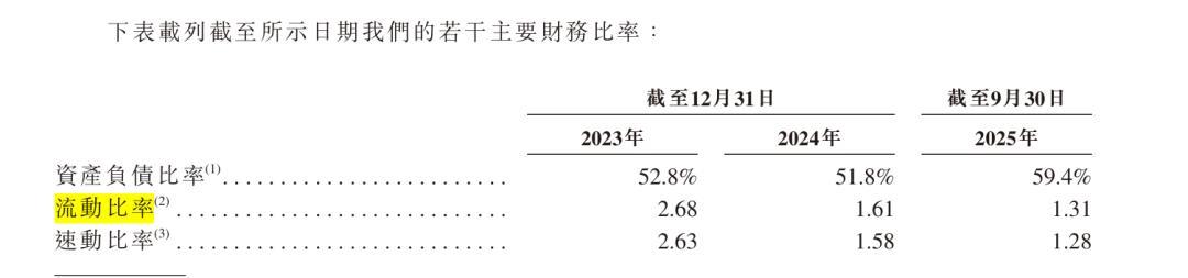 数据表露,公司财富欠债率从2023年末的52.8%攀升至2025年9月末的59.4%;同期,公司银行贷款界限从2023年末的7800万元激增至2.33亿元,流动比率、速动比率辨认降至1.31倍、1.28倍,短期偿债才气握续弱化。