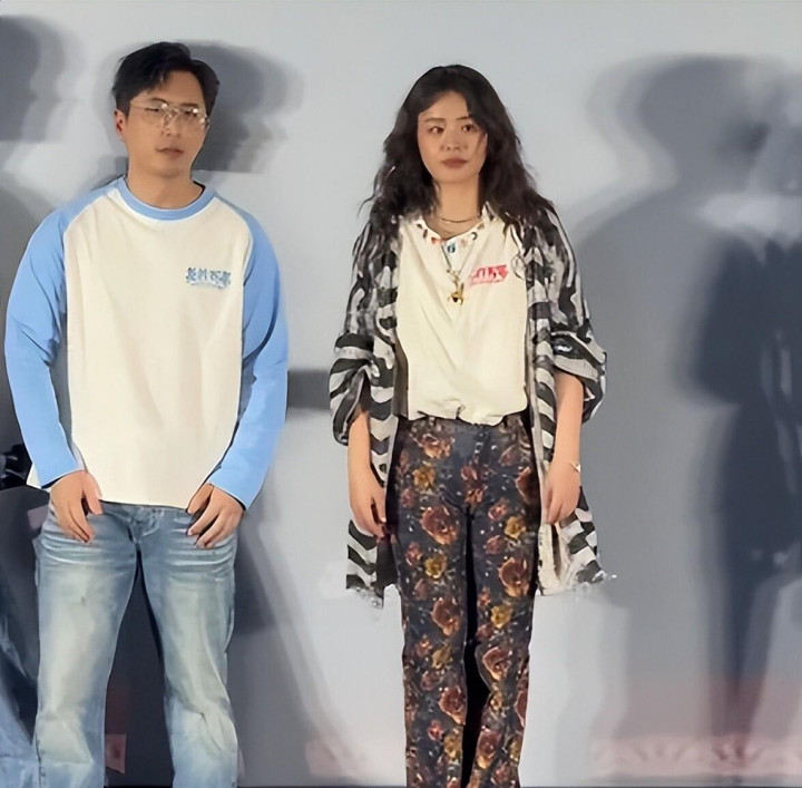首映礼现场,马想纯站在C位。 上身是件平常的粉白拼色卫衣,下半身那条紧身裤的花色,被描述为“奶奶衣柜里压箱底的阵势”。 她自己不是娇小骨架,裤子紧绷着,胯宽、腿粗的线条一望强大。 蓬松的羊毛卷堆在脸侧,把原来高昂的脸型横向拉宽。 有媒体用“土到没边”来描述这套造型。